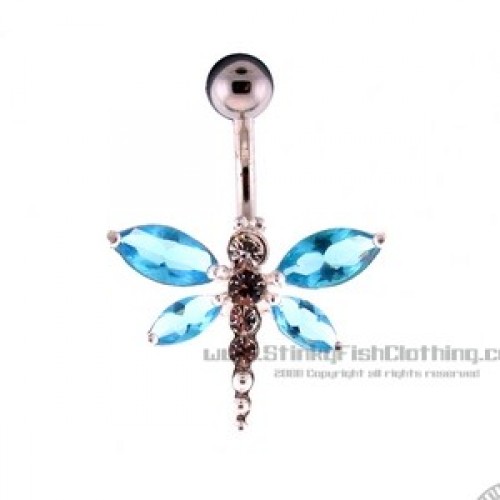 High quality 1.6mm surgical steel belly bar with sterling 925 silver crystal dragonfly. Also looks great in other body piercings, such as ears.