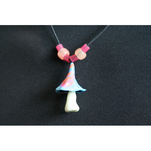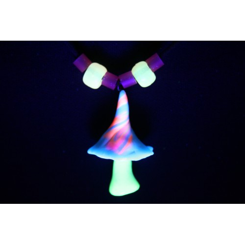 UV Blue, Orange & Pink Magic Mushroom Neclace